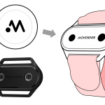 - Movesense strap mount comes with a wrist-sized band with velcro length adjustment on both ends. The ideal strap width is 28 mm / 1.1 inches.